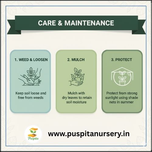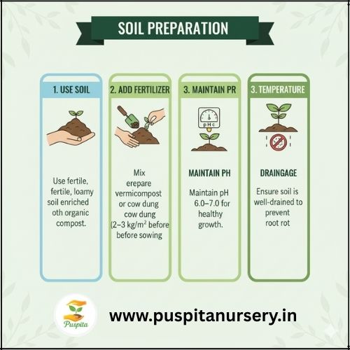 Mix vermicompost or cow dung (2–3 kg/m²) before sowing.