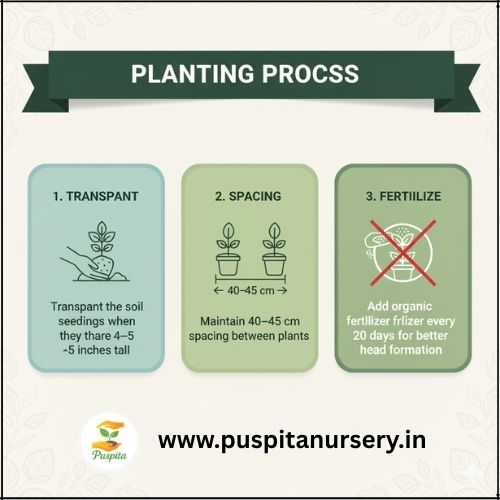 Add organic fertilizer every 20 days for better head formation.