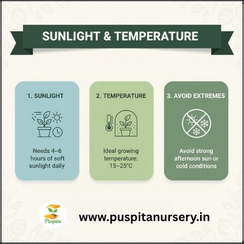 Needs 4–6 hours of soft sunlight daily.