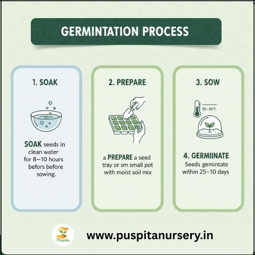 High Germination Rate (80–90%): Seeds sprout quickly within 7–10 days under 25–30°C temperature.
