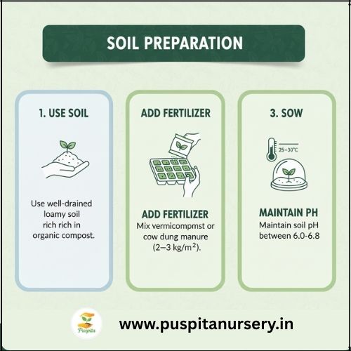 Mix vermicompost or cow dung manure (2–3 kg/m²).