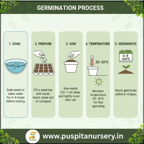 Fast Germination (85–90%): Sprouts within 6–8 days at 25–30°C temperature.
