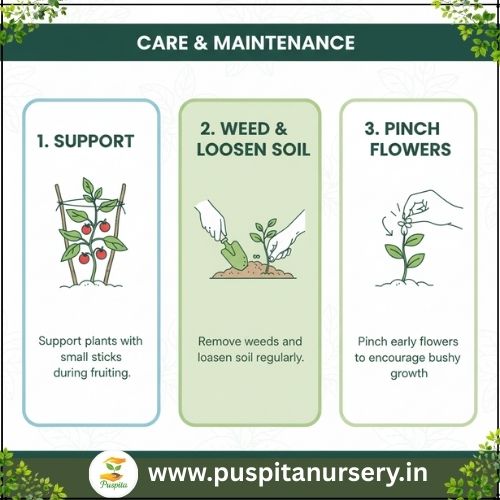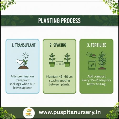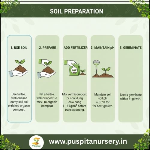 Mix vermicompost or cow dung (2–3 kg/m²) before transplanting.