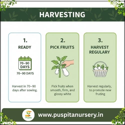 Premium White Brinjal Seeds by Puspita Nursery: High-quality hybrid seeds producing glossy, tender, and delicious white brinjals.