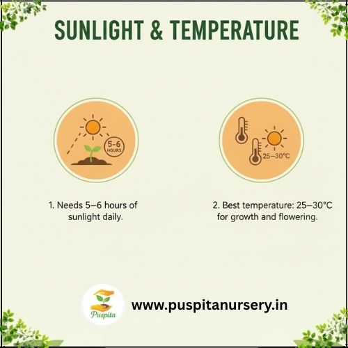 Sunlight & Temperature Friendly: Requires 5–6 hours of sunlight daily and grows well in moderate climate.