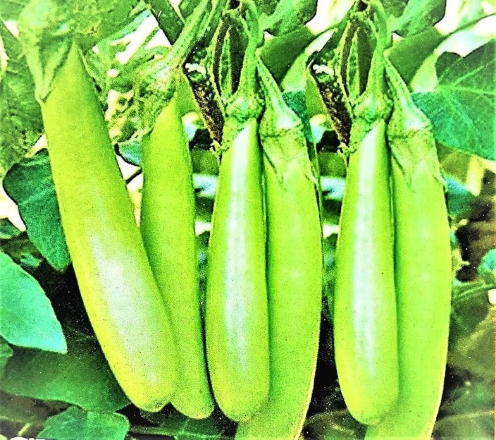 Produces long, smooth, shiny green brinjals with rich flavor and texture.