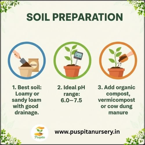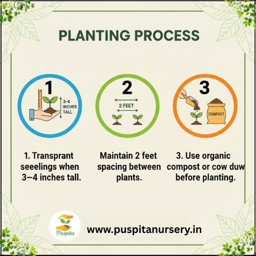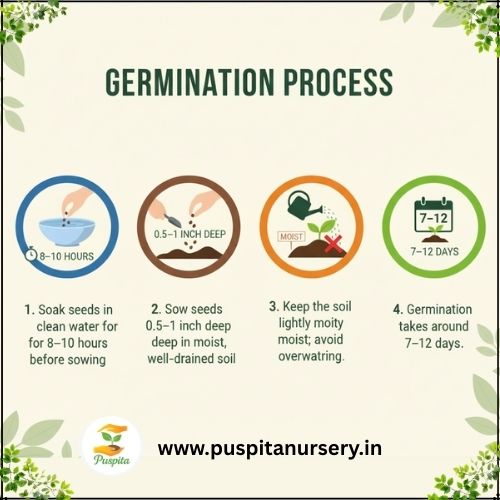 Sow seeds 0.5–1 inch deep in moist, well-drained soil.