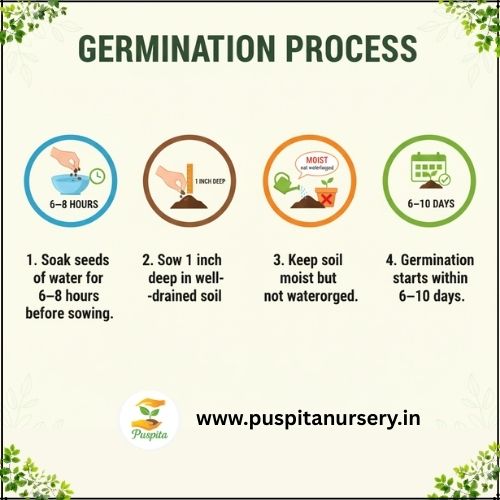 Soak seeds in water for 6–8 hours before sowing.
