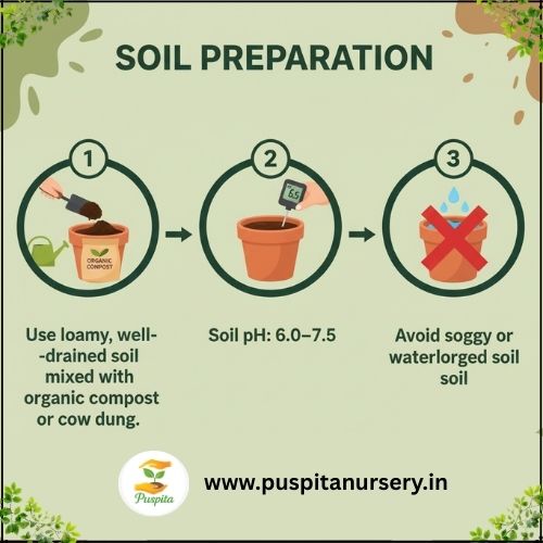 Use loamy, well-drained soil mixed with organic compost or cow dung.