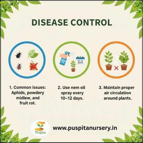 Common issues: Aphids, powdery mildew, and fruit rot.