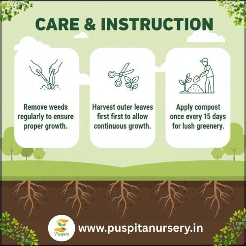 .Fast-Growing & Early Harvest: Ready to harvest within 30–40 days after sowing. Continuous leaf picking possible.