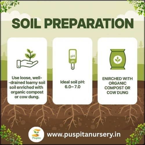 Use loose, well-drained loamy soil enriched with organic compost or cow dung.