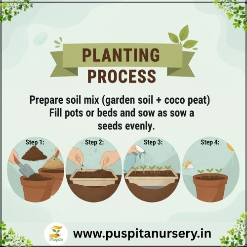Step 1: Sow seeds 0.5 cm deep in moist, well-draining soil.