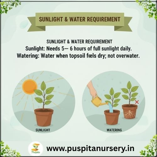 Sunlight: Needs 5–6 hours of full sunlight daily.