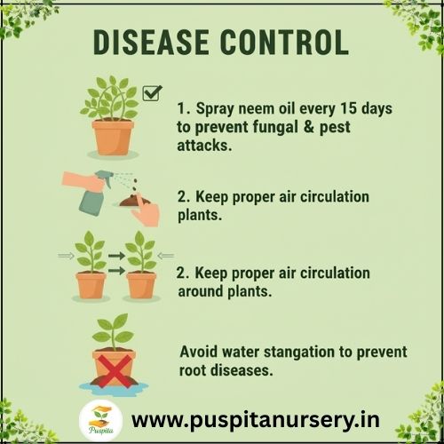 Spray neem oil every 15 days to prevent fungal & pest attacks.